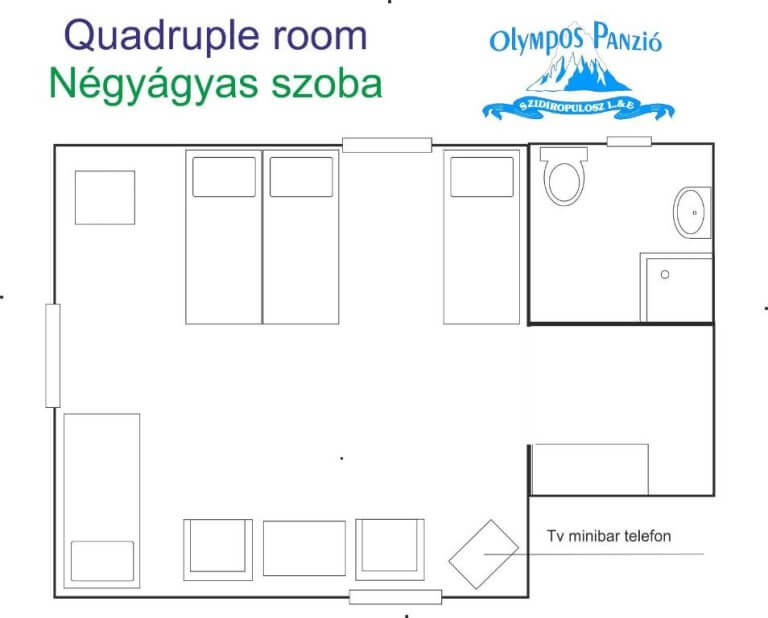 Négyágyas szoba, négy fő részére. Két dupla ágy vagy négy külön álló ággyal.